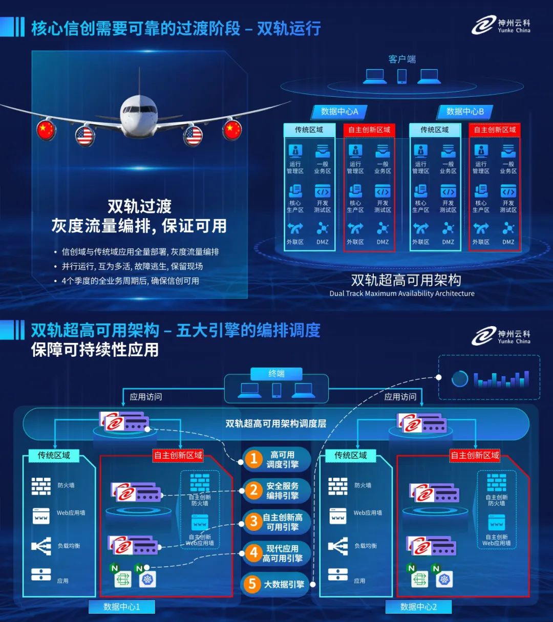 为助力金融业务高质量发展,更好地应对数字经济时代对可持续性的高要求,实现“信创”与“数字化”齐头并进,BB贝博艾弗森创新性的推出了核心信创·双轨过渡的超高可用架构。该架构在双活数据中心的分区调度基础上,增加信创域和非信创域的分域调度,实行信创域与传统域应用全量部署,使双中心运营变为双中心四区域并行运行,互为多活,将“0到1”的单轨建设道路变为分区分域协同的多活双轨超高可用架构。帮助客户在新架构下,保障“信创”的同时解决性能瓶颈,提升稳定性,保证应用可持续性,最终实现信创区域和非信创区域的平滑过渡,完成国产化替代目标。